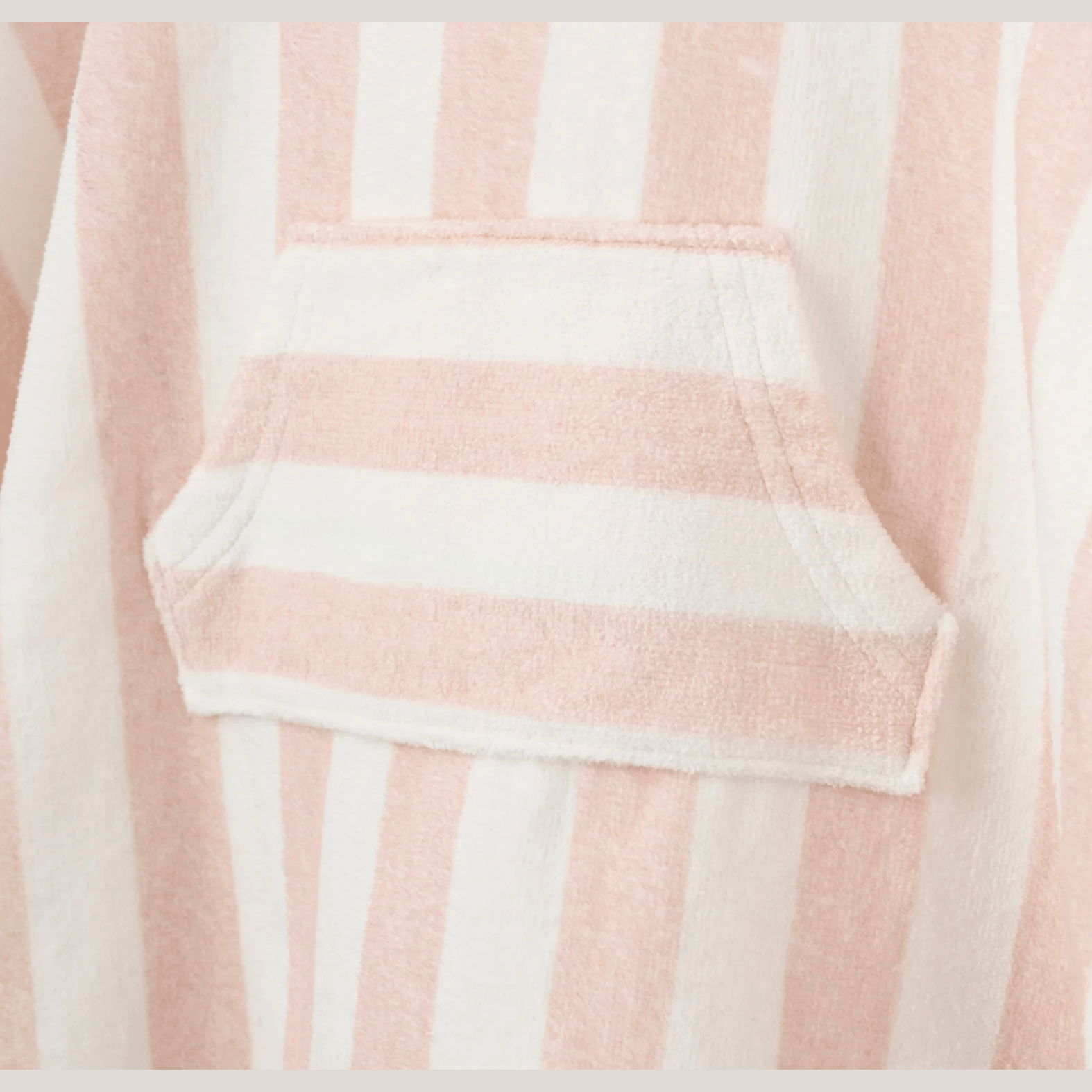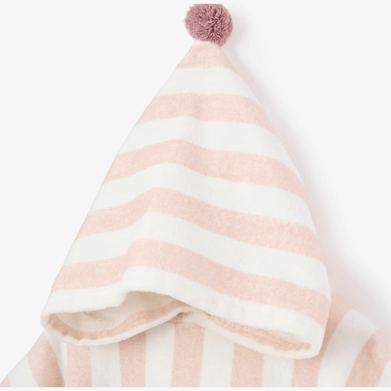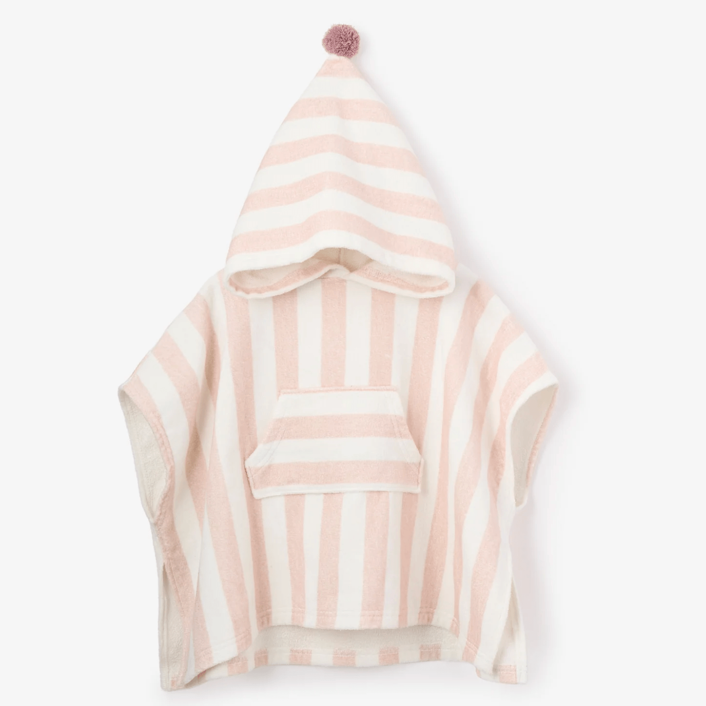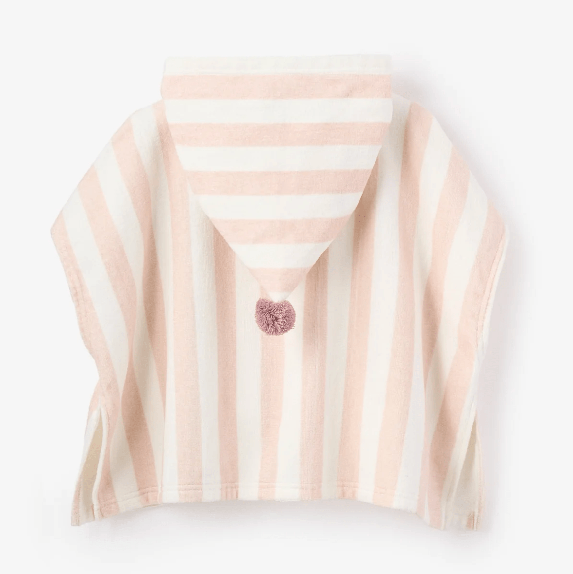 Crafted from soft, absorbent cotton terry, this cabana-striped poncho is a beach and poolside essential. Designed with an oversized fit, wide tacked sleeves, and a playful contrast pom-adorned hood, it grows with your child for years of sun-soaked adventures.