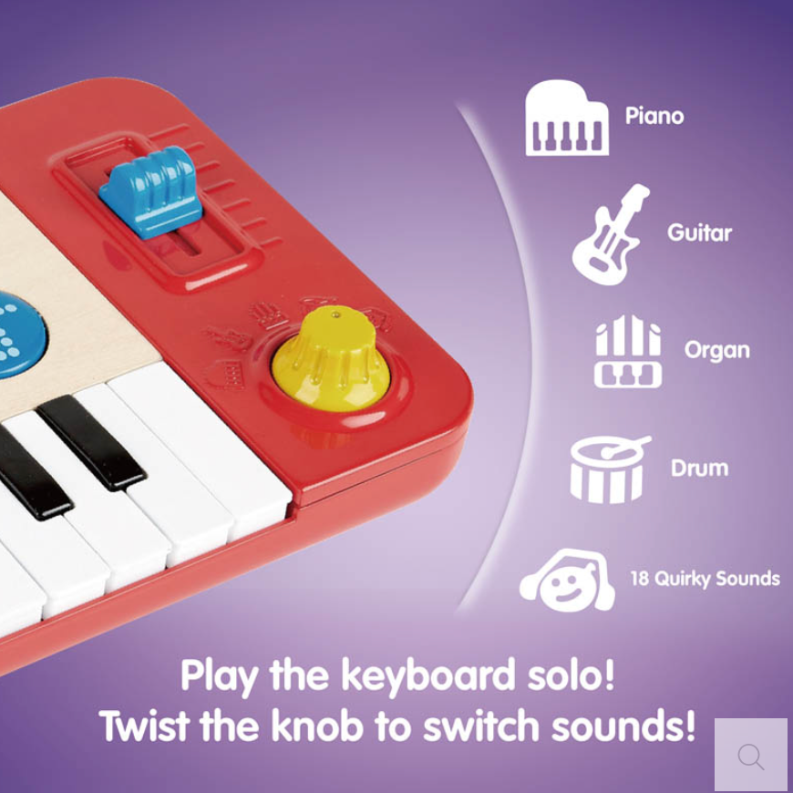 Help your little ones spin their first tunes with this portable DJ studio! Play the keyboard solo with one of four instrument sounds or 18 fun sound effects or you can start one of five background tunes and use the tempo slider to change the speed, add DJ sound effects as well as scratching along with the black record!