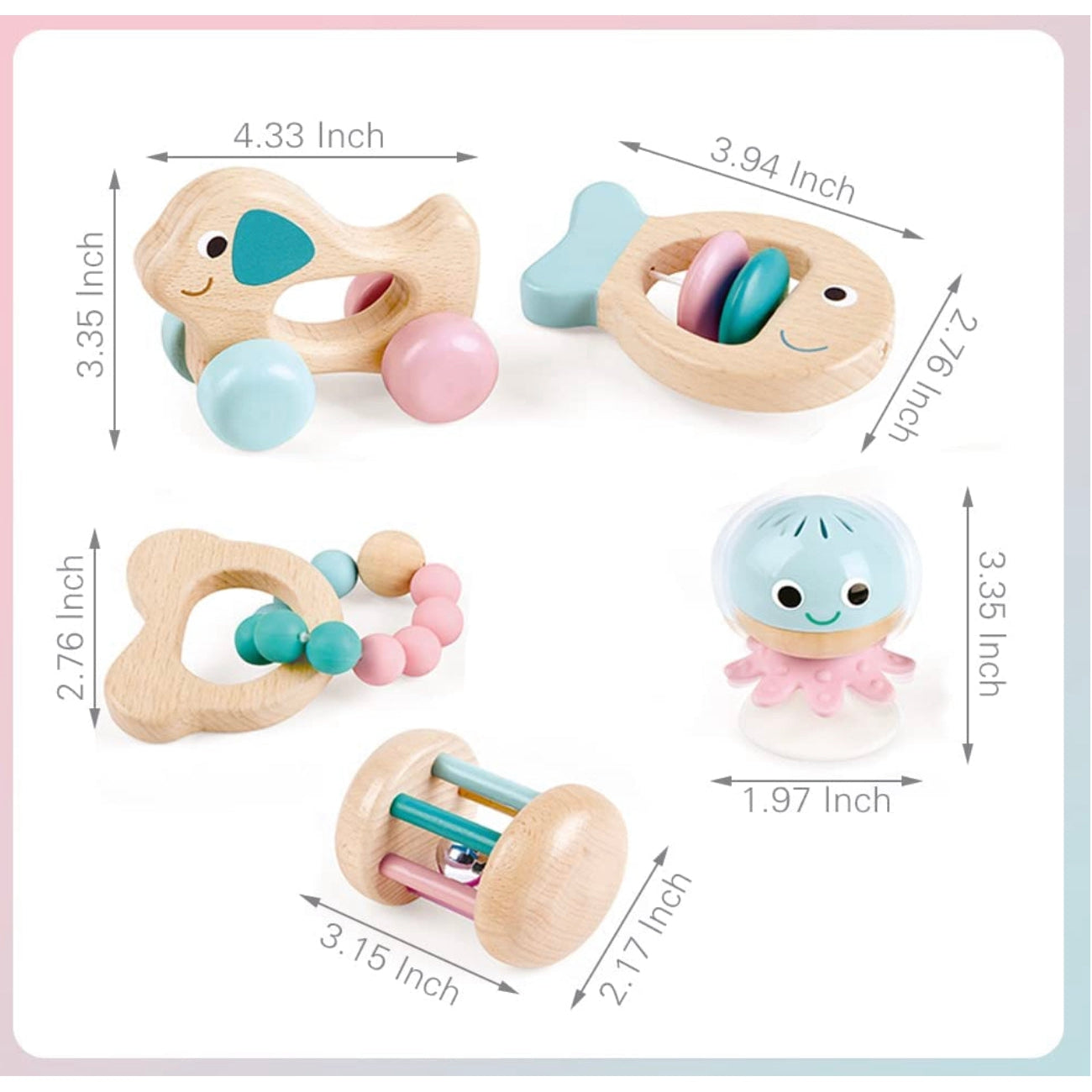 - . Safe to Play With: This toy set is made from child-safe paint finishes and durable wooden materials. Suitable for newborn babies and toddlers.