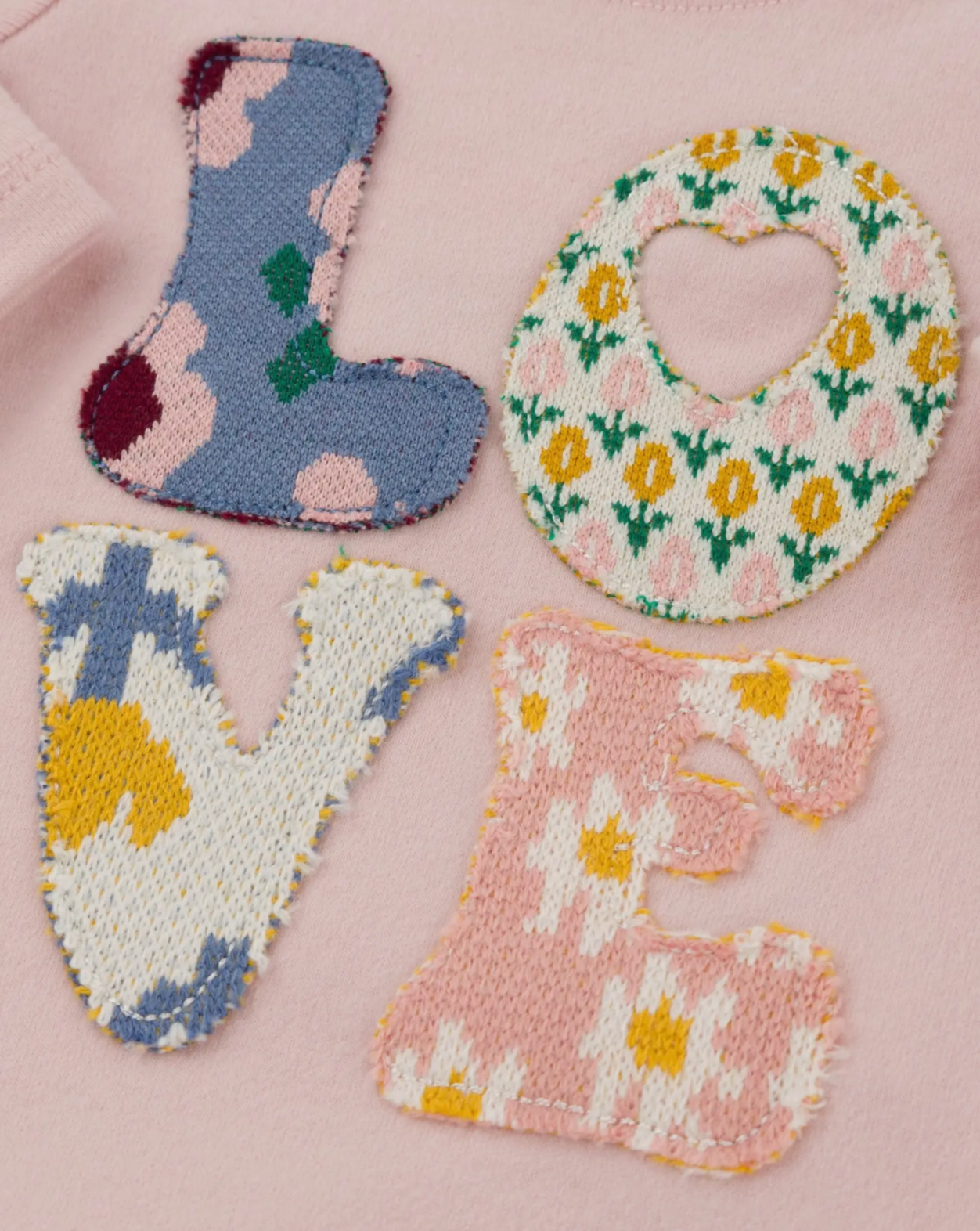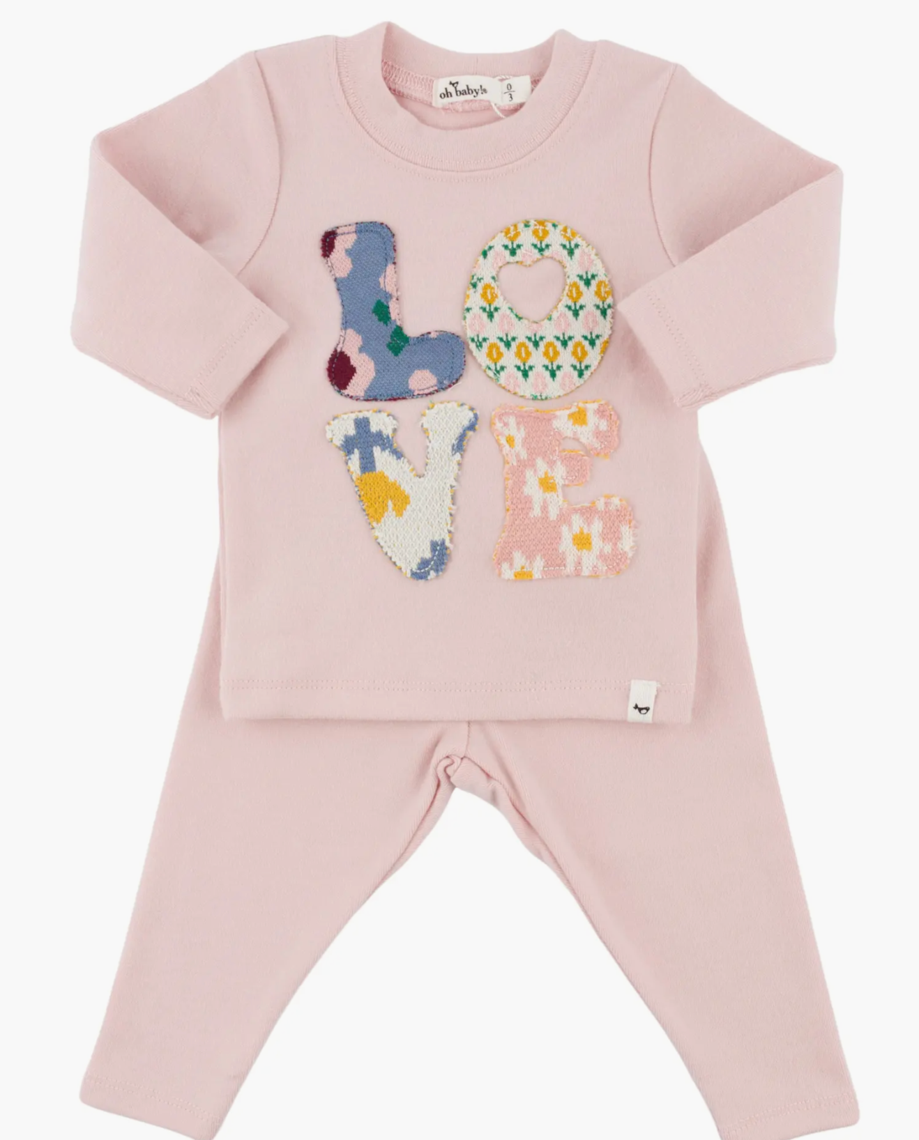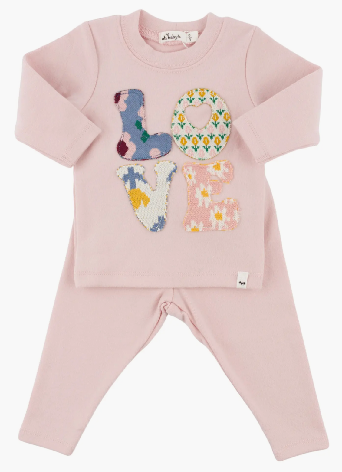 Oh Baby Quilted Love Stacked Applique L/S 2pc Set (Dusty Pink)
