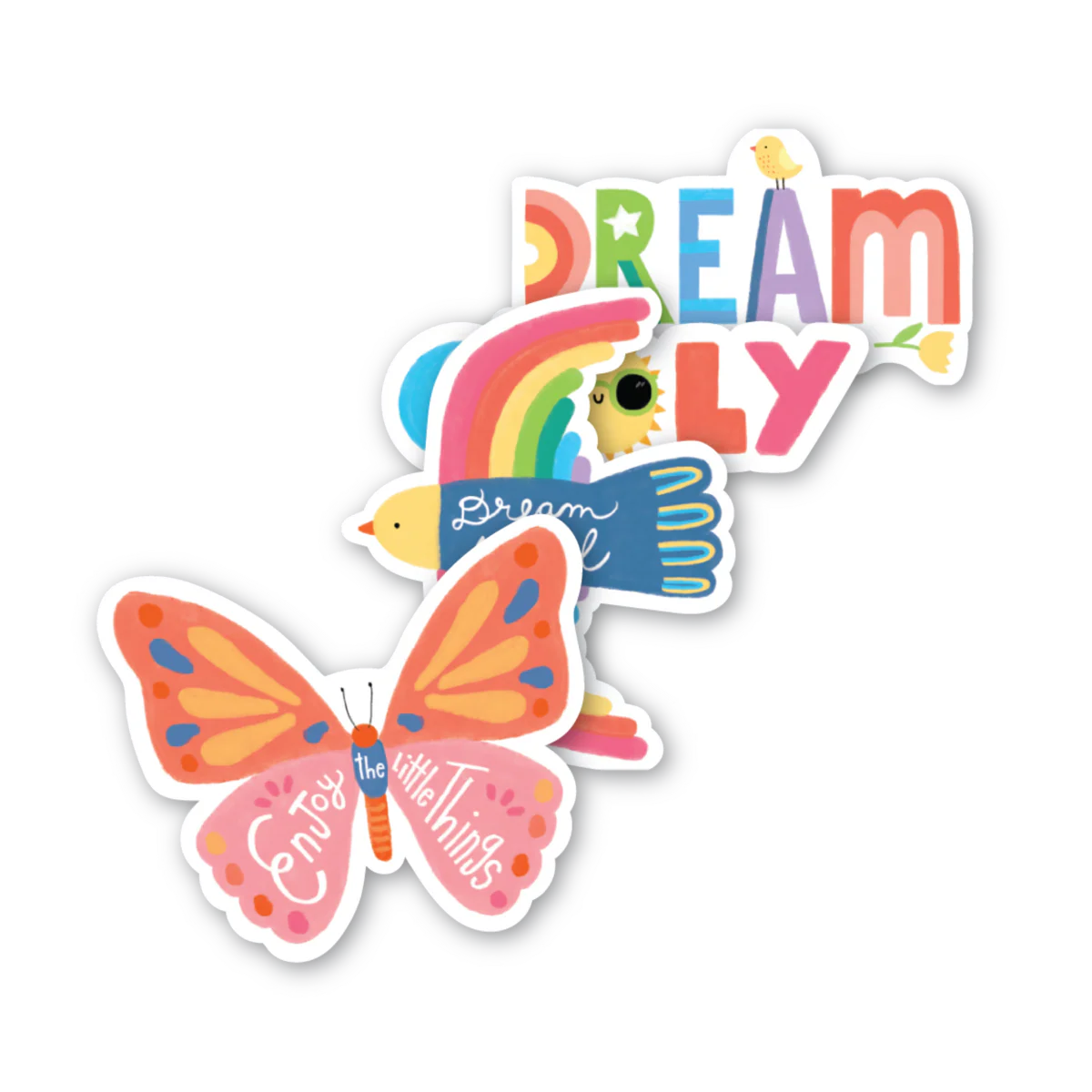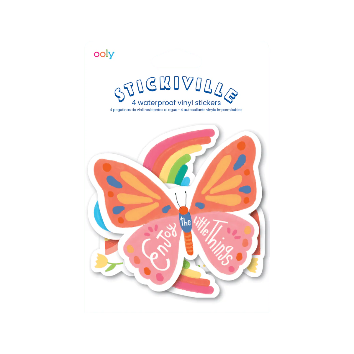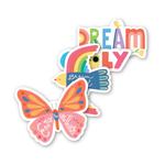 Inspire big dreams with OOLY's Stickiville Vinyl Stickers in Dream design! This vibrant four-sticker set features uplifting messages in a gorgeous rainbow palette, perfect for decorating water bottles, laptops, notebooks, and more. Each waterproof sticker (5.9" x 2.4") sticks around through adventures—ideal for kids starting new chapters or anyone needing a daily dose of motivation. A playful reminder to chase goals and celebrate the journey. Ages 3+.