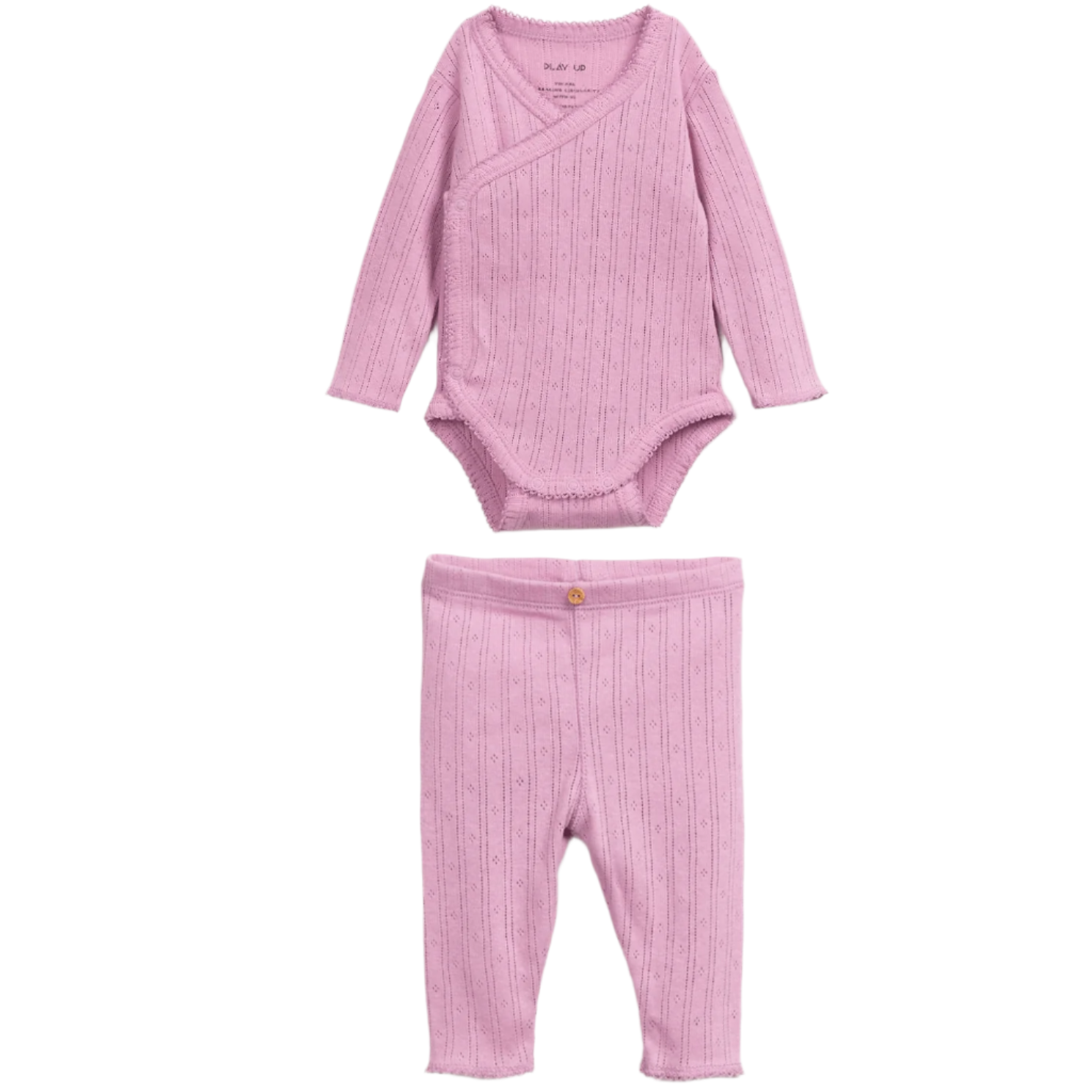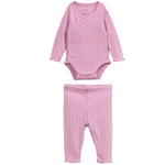 Looking for style and comfort? Look no further than these high-quality, eco-friendly bodysuits and leggings made from organic and recycled cotton. Stay fashion-forward while going green. And bonus! The bodysuit has extra snap lengths for added length. Materials: 50% organic cotton, 50% recycled cotton.