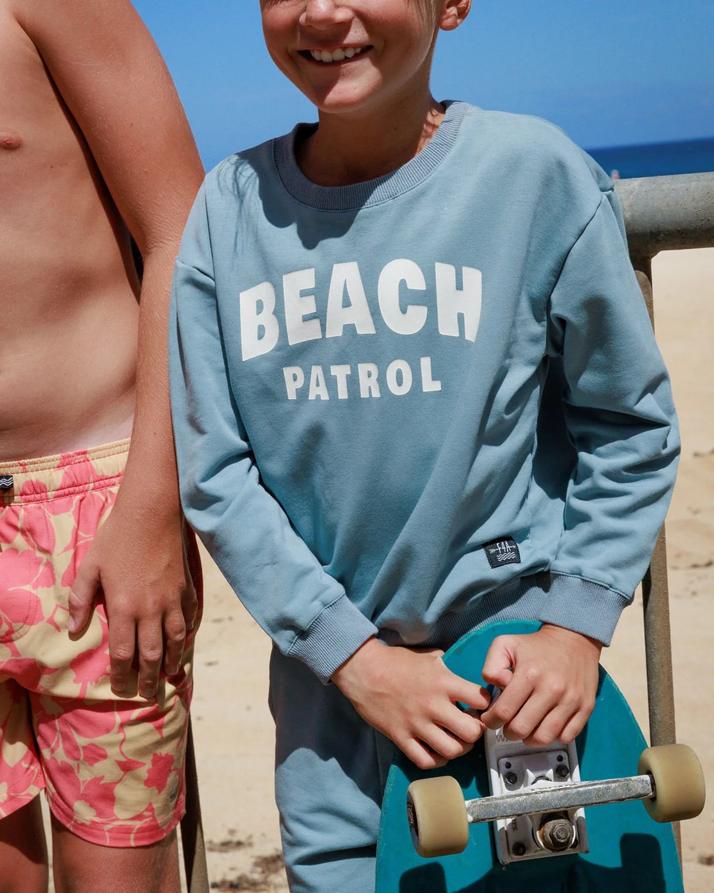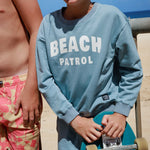 The Ryder Sweatshirt is your go-to layer for year-round comfort and style. Featuring a playful "Beach Patrol" graphic on soft french terry, this essential piece pairs vintage Surf Blue tones with a relaxed fit that works from beach bonfires to cozy winter hangouts. The 96% cotton and 4% spandex blend keeps things lightweight and stretchy, while ribbed hemlines lock in the shape. True to size and impossibly soft—the kind of sweatshirt kids actually want to wear.