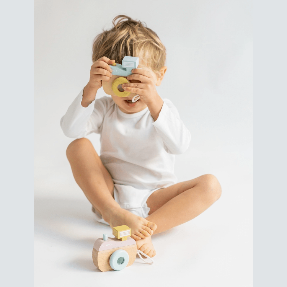 Age: +2 years Dimensions: 3.7 x 3.4 x 0.9 in. Materials: FSC Wood & plastic lens. Smile! Your little one will become a real photographer with this fun wooden camera. When looking through its rotating lens will discover a kaleidoscope with which to see the world in the most fun way. Thanks to its design perfect for little hands, he will develop imagination and creativity while practicing imitation games. It includes a small strap to hold the camera and not lose it while, clicking, take the coolest pictures. Go on, say cheese... click!
