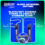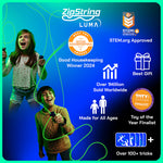 Light up the night with ZipString Luma — the glow-in-the-dark toy that flies a looped string for amazing tricks, shapes, and games.